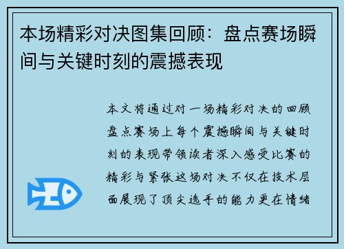 本文将详细阐述赣超1/4决赛首回合赣州队客场1-0力克南昌队的比赛情况,特别聚焦于曹运祥的头球制胜进球,这一进球为赣州队带来了宝贵的领先优势。文章将从四个方面深入分析本场比赛的关键因素:比赛的整体表现、曹运祥的精彩头球、南昌队的防守问题以及比赛的战术布局。通过对这四个方面的分析,我们可以更清楚地理解赣州队如何在客场赢得这场关键比赛,并展望两队接下来的对决。最后,文章会总结赣州队的表现以及对接下来的...